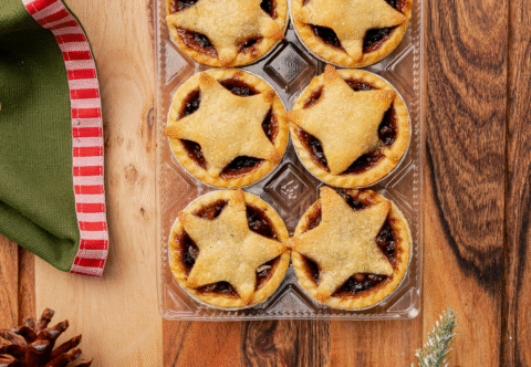 Fruit Mince Pie – 6 Pack Six delicious fruit mince pies which have been hand made in our North Adelaide bakery with a rich shortcrust pastry, filled with lashings of spiced fruit. Packaged in festive box, makes it perfect for Christmas gifts. |