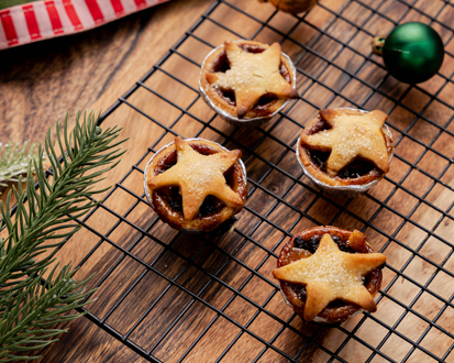 Fruit Mince Pie – Mini Hand made mini fruit mince pies with a rich shortcrust pastry, filled with lashings of spiced fruit. Perfect for Christmas parties. |