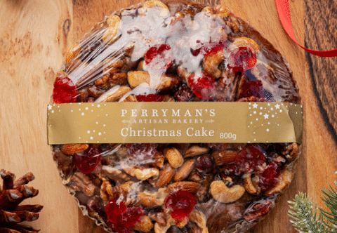Christmas Fruit Cake – 7″ Round A decadent Christmas cake, filled with brandy soaked dried fruits and topped with a roasted nut medley. Finished with festive Perryman's packaging. |